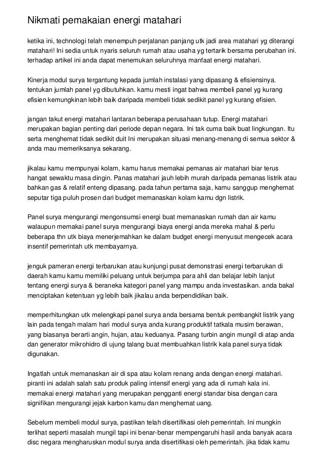 Nikmati Pemakaian Energi Matahari